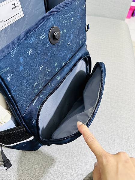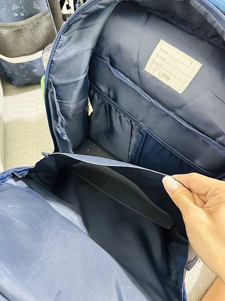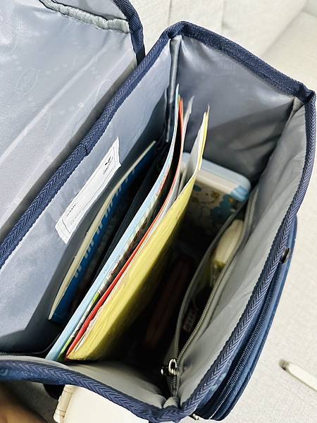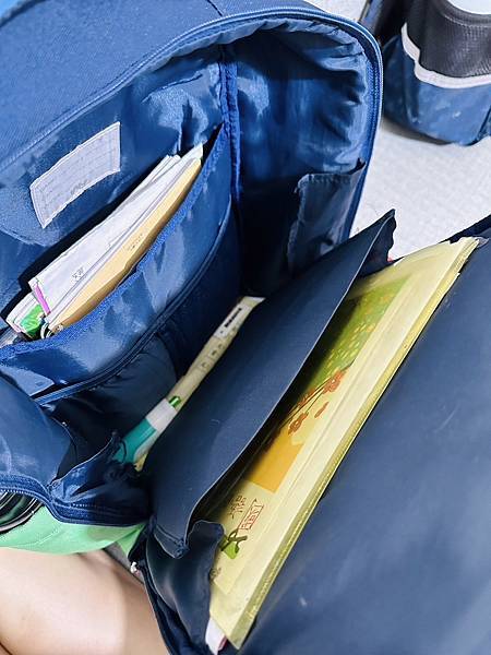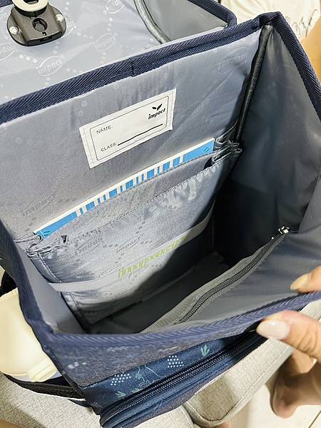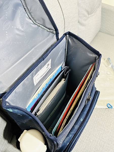怡寶書包打開,除了我說的小拉鏈袋和有伸縮帶的隔板以外,就沒有其他隔板,但是因為本身書包是很挺版!